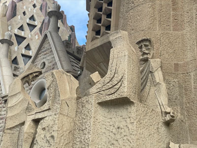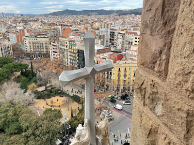 サグラダ・ファミリアの生誕のファサード、受難のファサードそれそれの塔はエレベーターで上ることが出来ます。塔からはサグラダファミリアの彫刻やオブジェを間近に見ることが出来るほか、バルセロナ市街を一望することが出来ます。