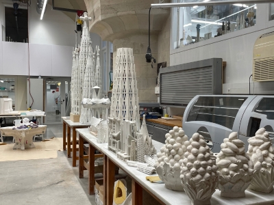 このツアーでは、サグラダ・ファミリアの内部だけでなく、地下にある博物館も見学します。地下博物館には、サグラダ・ファミリアの模型などが展示されており、これまでの建築の歴史を学ぶことができます。博物館内部でも日本語ガイドが解説します。ミュージアムショップでお土産を購入することもできます。